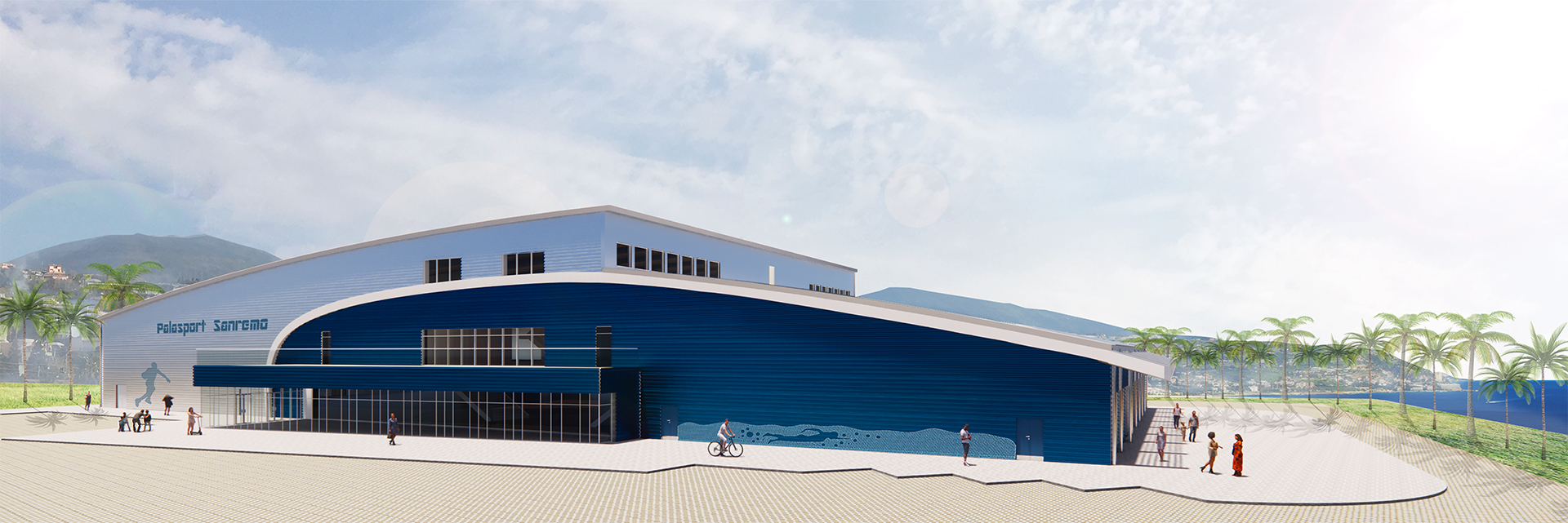 Il Nuovo Palazzetto è stato progettato sull'area camper detta “Pian di Poma” collocata lungo il litorale di Sanremo. Il progetto architettonico d’insieme, mediante la composizione dei volumi e lo studio di una copertura dalle linee curve e dall'altezza contenuta, si inserisce e si integra con l’ambiente circostante, riducendo il suo impatto sul fronte mare e ricercando un integrazione anche con le aree verdi circostanti.
