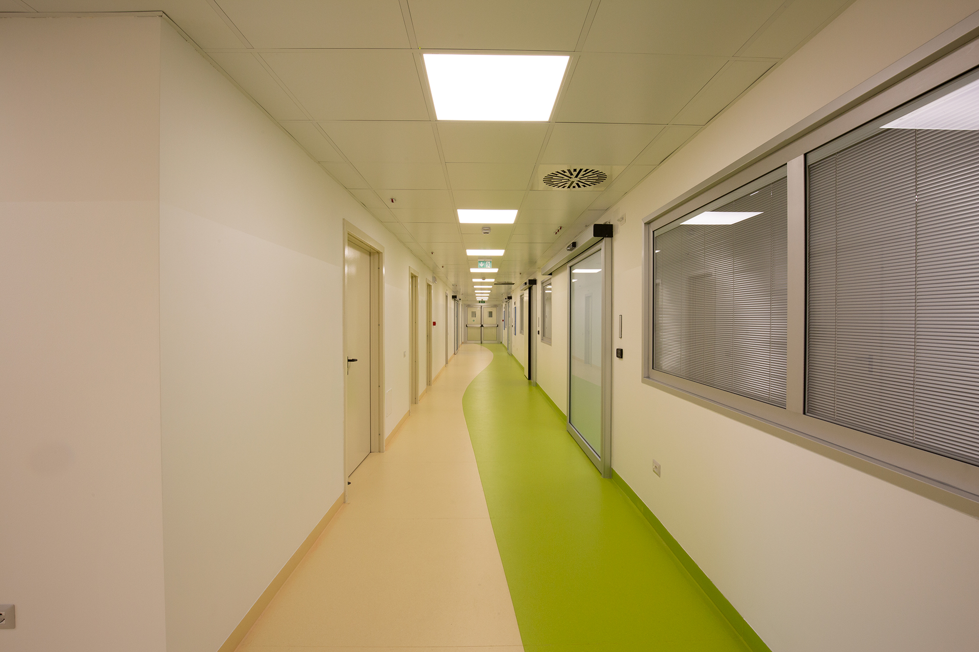 Inoltre, è stata data particolare attenzione all’umanizzazione degli ambienti, con l’obiettivo di realizzare un ambiente quanto più possibile sereno e confortevole per i piccoli pazienti, attraverso l’uso del colore dei rivestimenti e dei pavimenti.